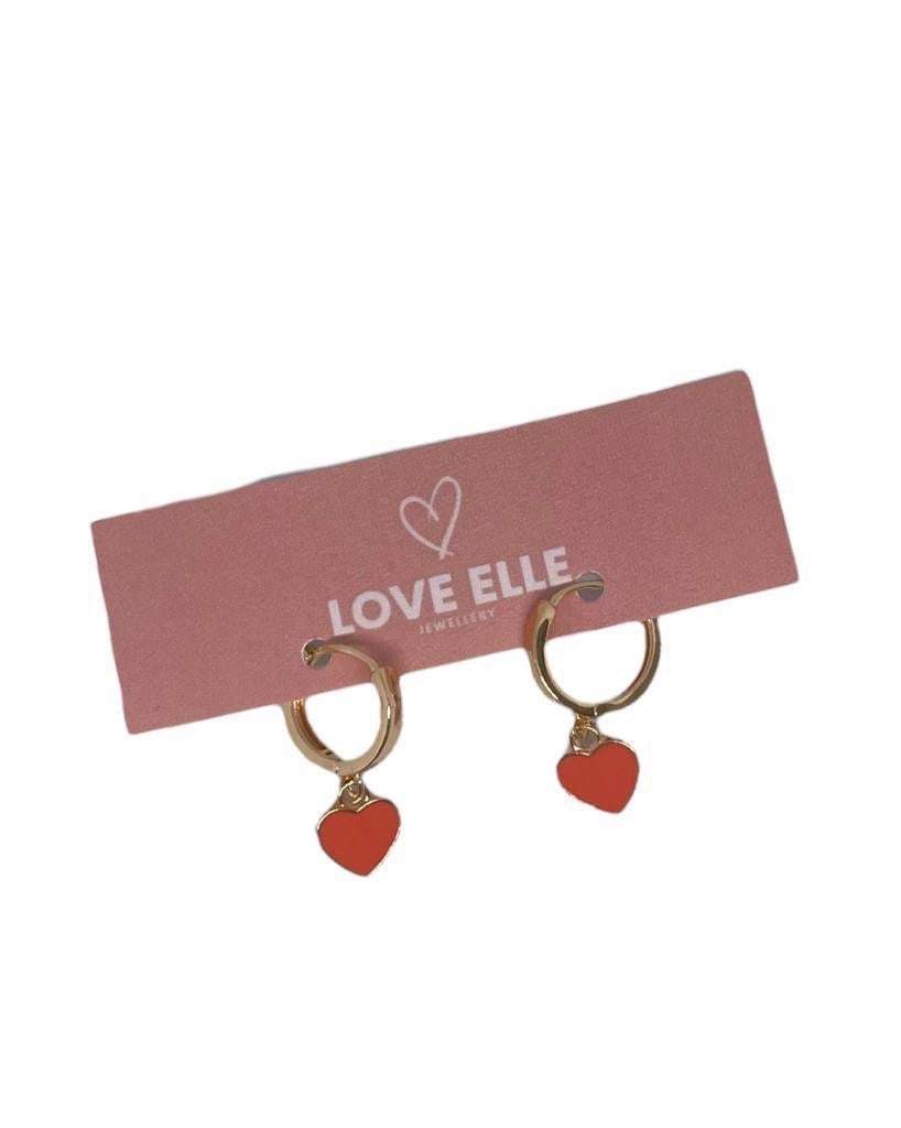 Gorgeous 18K Gold Plated Heart Huggies earrings with a coral enamel heart charm!