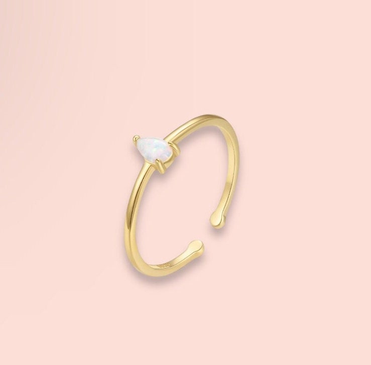 925 Sterling Silver 18K Gold Plated Opal Drop adjustable ring!