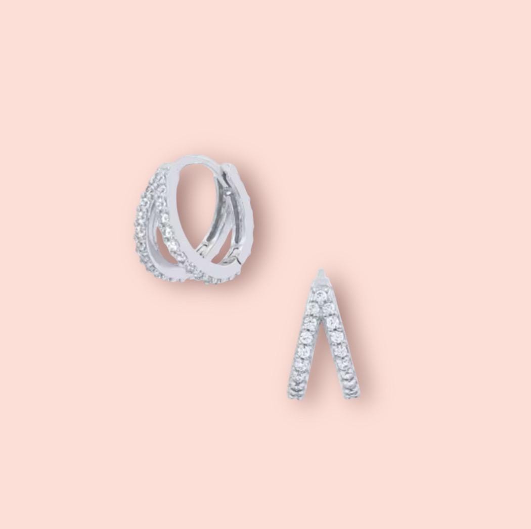 925 Sterling Silver Cubic Zirconia Clear Gem Sparkle Double mini Hoop Earrings