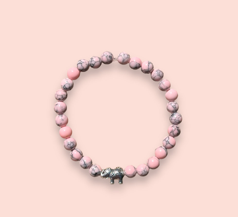 Baby pink marble elephant bracelet with inspirational courage/ strength/ bravery quote card!