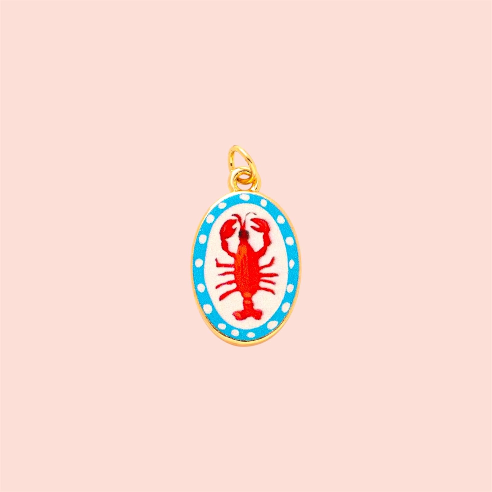 18K Gold Plated Hand painted blue white red Lobster Enamel Charm