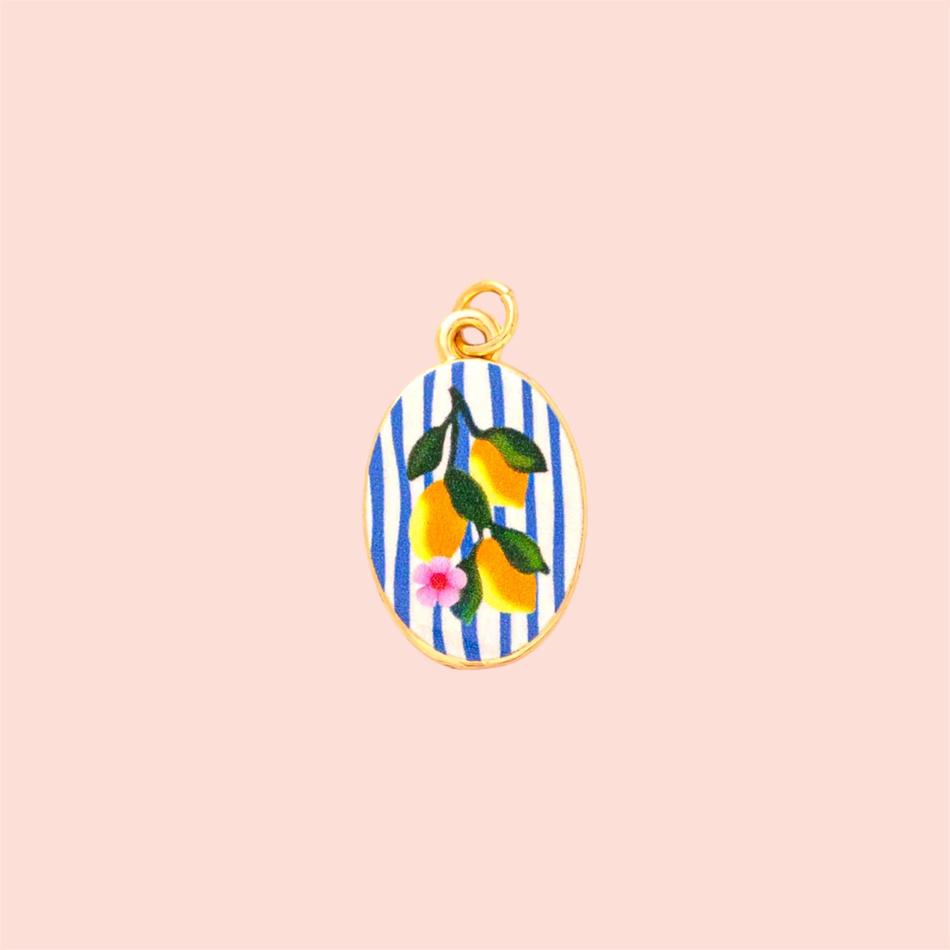 18K Gold Plated Hand painted blue white Lemon Fruits Enamel Charm