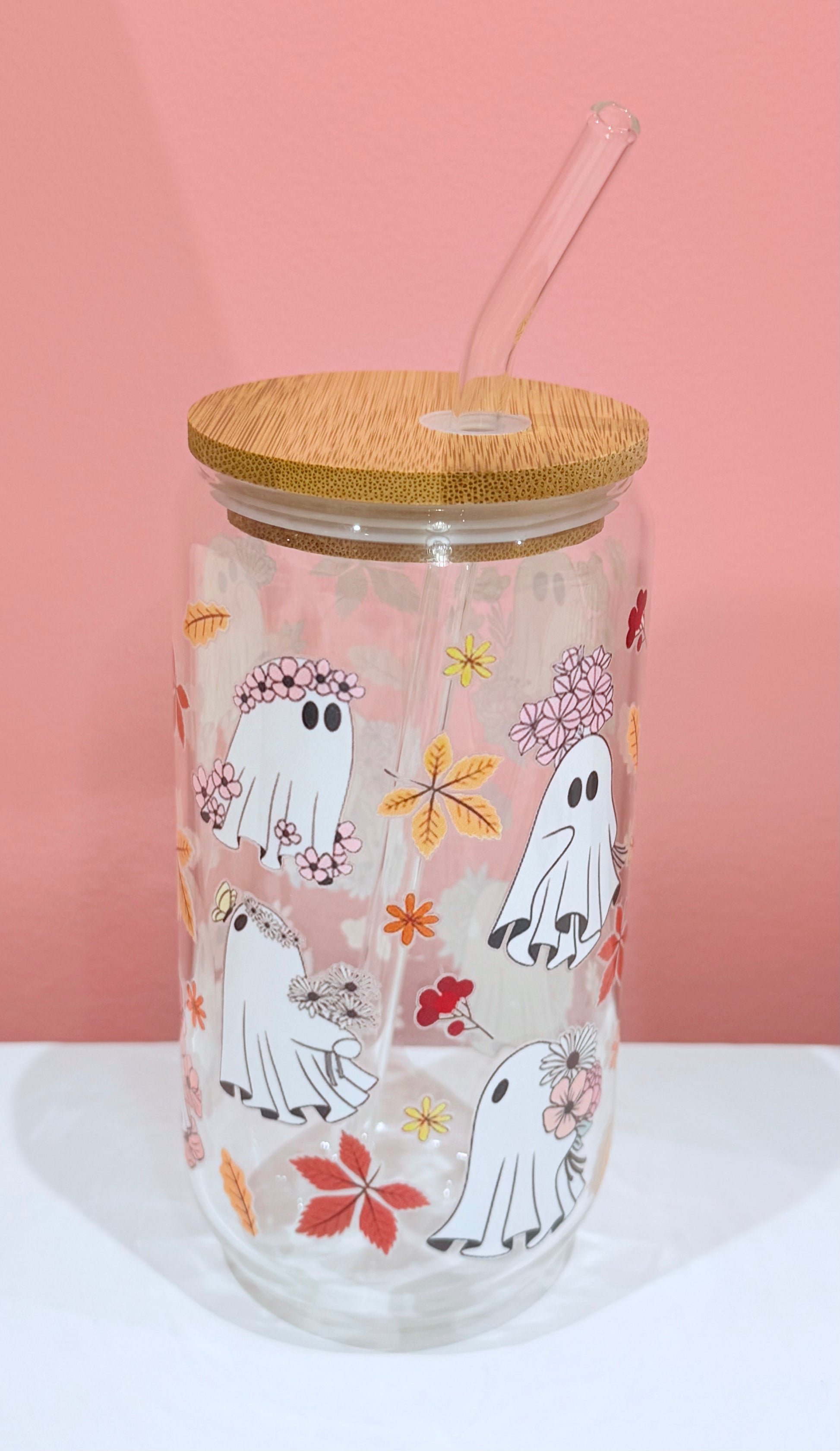 Our glass cups holds 16 ounces of your favourite beverage, includes a bamboo lid and glass straw, this cute glass cup is the perfect way to enjoy your favourite beverage. The design is placed onto the glass using a high quality UVDTF transfer making it permanent, almost texture free & waterproof! This product is not suitable for young children as it is a glass product!