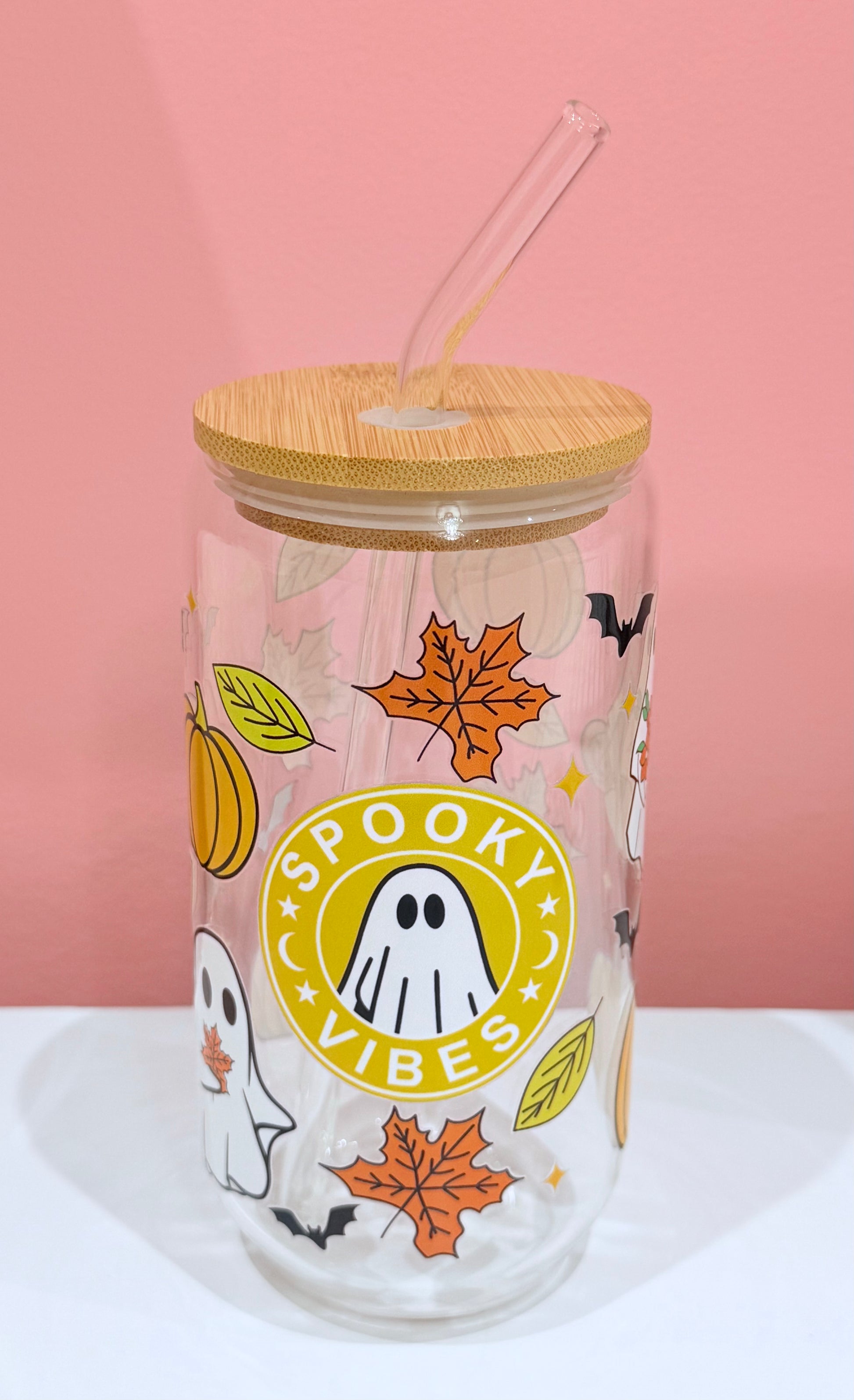 Our glass cups holds 16 ounces of your favourite beverage, includes a bamboo lid and glass straw, this cute glass cup is the perfect way to enjoy your favourite beverage. The design is placed onto the glass using a high quality UVDTF transfer making it permanent, almost texture free & waterproof! This product is not suitable for young children as it is a glass product!